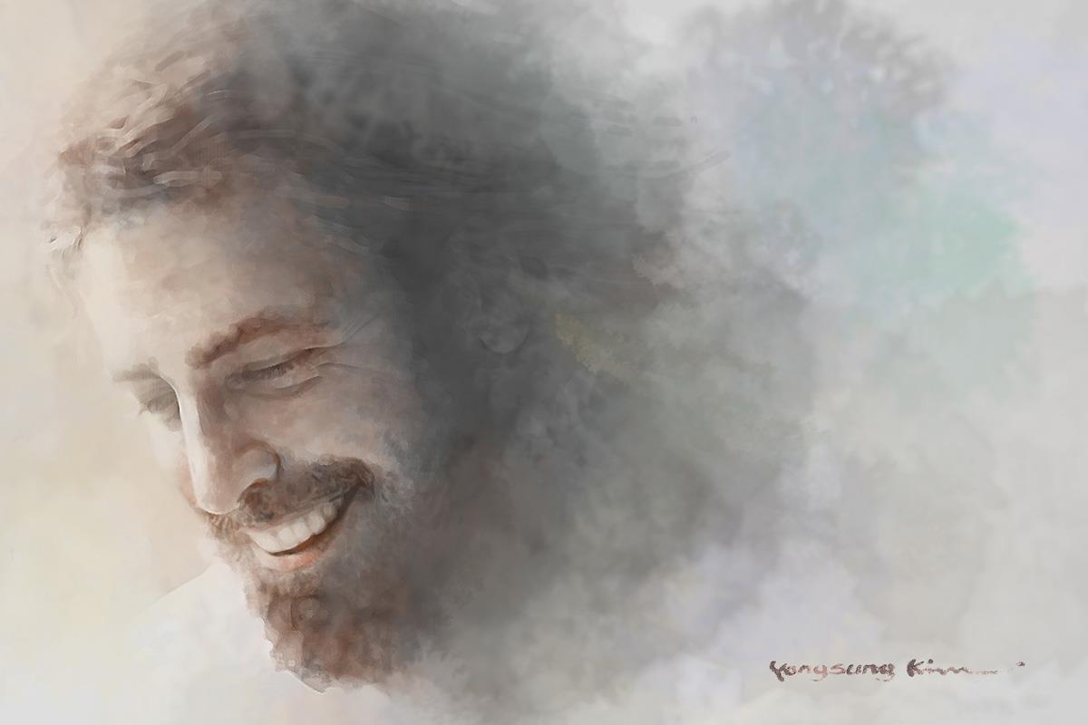 Joy by Yongsung Kim depicts Jesus' head surrounded by white clouds and He is smiling. This painting is available in print and canvas.