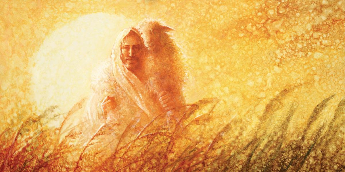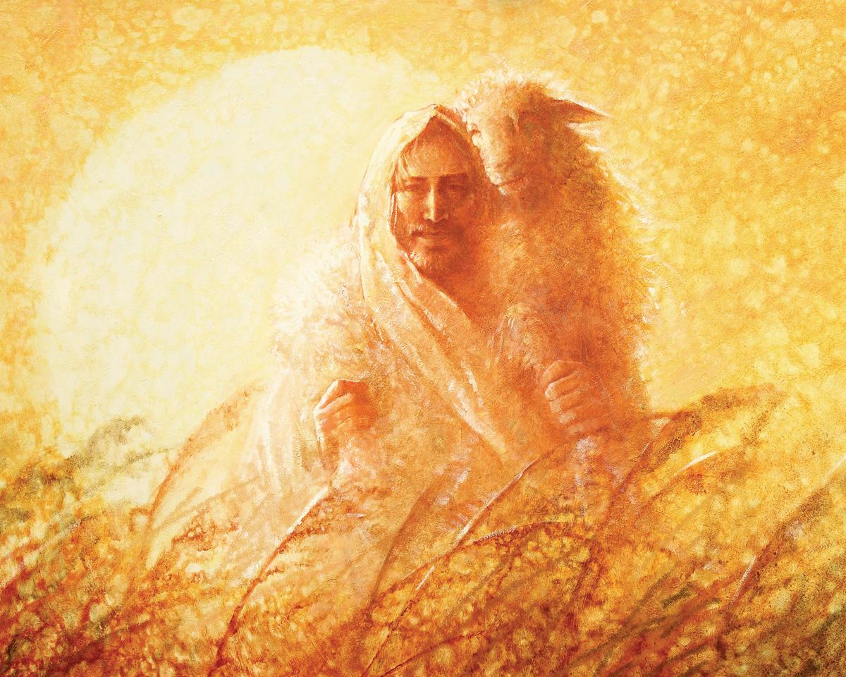 That Which Was Lost by Yongsung Kim depicts Jesus returning through a golden field with a sheep on his shoulders and a great big yellow sun in the background. This painting is available in print and canvas.